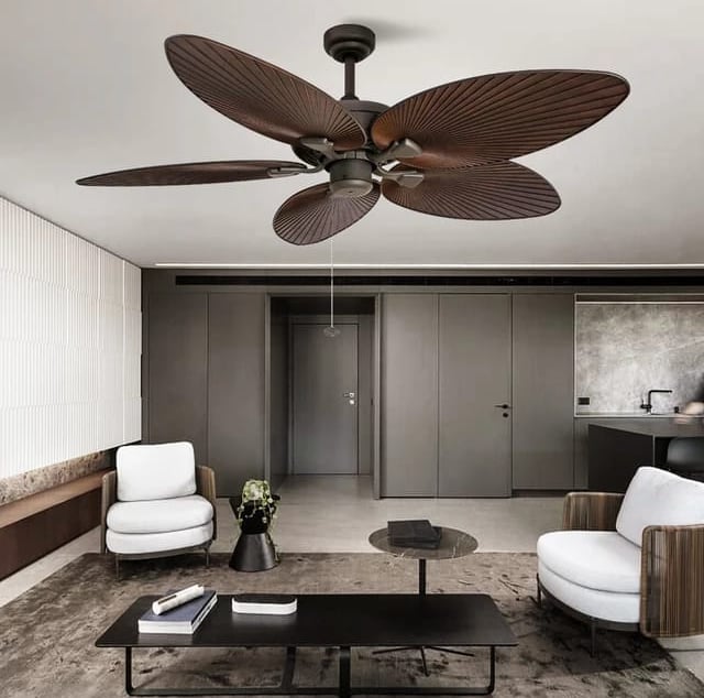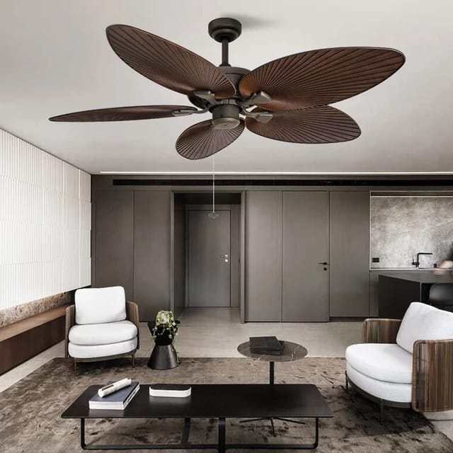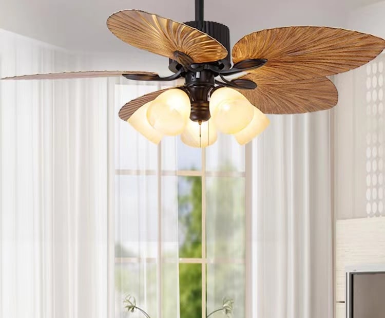 Bring a touch of island elegance to your space with this beautifully crafted Tropical Leaf Blade Ceiling Fan. Featuring five large, natural leaf-shaped blades, this fan combines both form and function—perfect for verandas, patios, garden lounges, or even indoor tropical-themed décor.